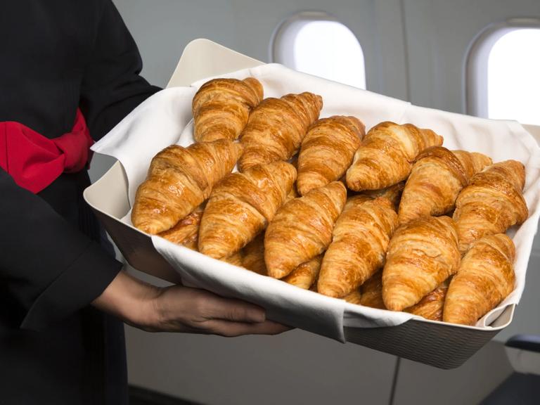 On short flights,* we offer a snack adapted to the time of day, including: a croissant or pastry in the morning, a cold sandwich at meal time, savory or sweet biscuits, a sweet treat in the afternoon.